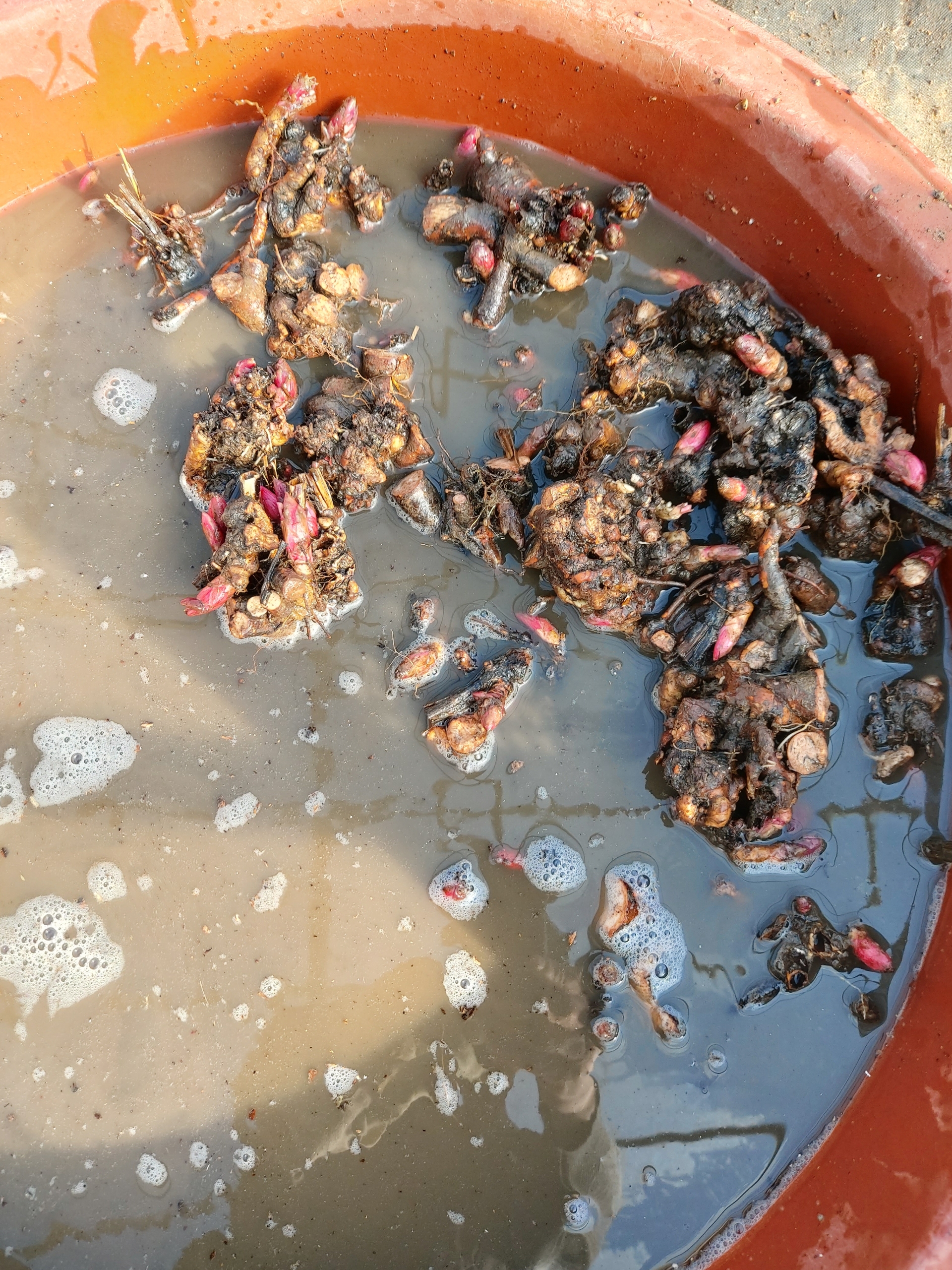 -굵은 뿌리를 묘두 부위에서 자르고(뿌리삽목) 가는 뿌리는 재배용 묘로 이용한다. (분주)